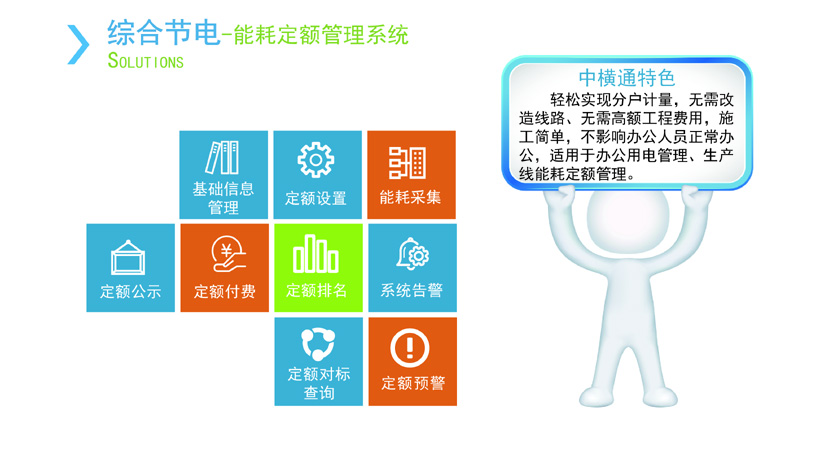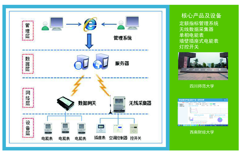 系统按部门、机构、学院甚至每间办公室用电进行计量计费,建立能耗指标体系及相关部门的定额指标体系,为平台对各部门、学院、办公室配置定额,分析比较、对用能情况进行排名,能耗定额与经费挂钩,提高使用部门及用能人员主动节能意识,达到能耗管控的目标。